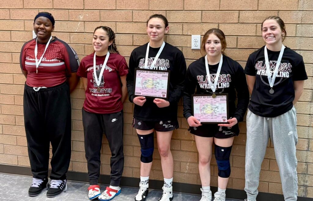 The Alamosa Mean Moose made a huge statement Saturday in their quest for a Colorado State team wrestling title, qualifying 13 boys and 5 girls for this Thursday’s CHSAA State tournament. The Alamosa boys team has been ranked #1 all season long.